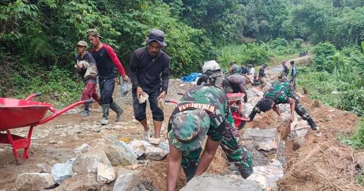 Polewali Mandar – Semangat gotong royong antara TNI dan masyarakat terlihat nyata pada hari terakhir pelaksanaan pra-TNI Manunggal Membangun Desa (TMMD) ke-127 Kodim 1402/Polman. Personel TNI bersama warga bahu-membahu mengerjakan sasaran fisik di ruas jalan poros Bulo–Lenggo, Desa Bulo, Kecamatan Bulo, Kabupaten Polewali Mandar, Senin (9/2/2026).